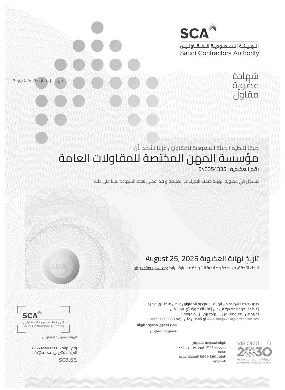 تتشـــرف مؤسســـتنا بأن تكون جزء من مســـيرة التقـــدم والتحول الوطني ضمـــن رؤية المملكـــة العربية الســـعودية ،2030 والتـــي تهدف الي تنـــوع الاقتصاد وتعزيـــز جودة الحياة فـــي المملكة .